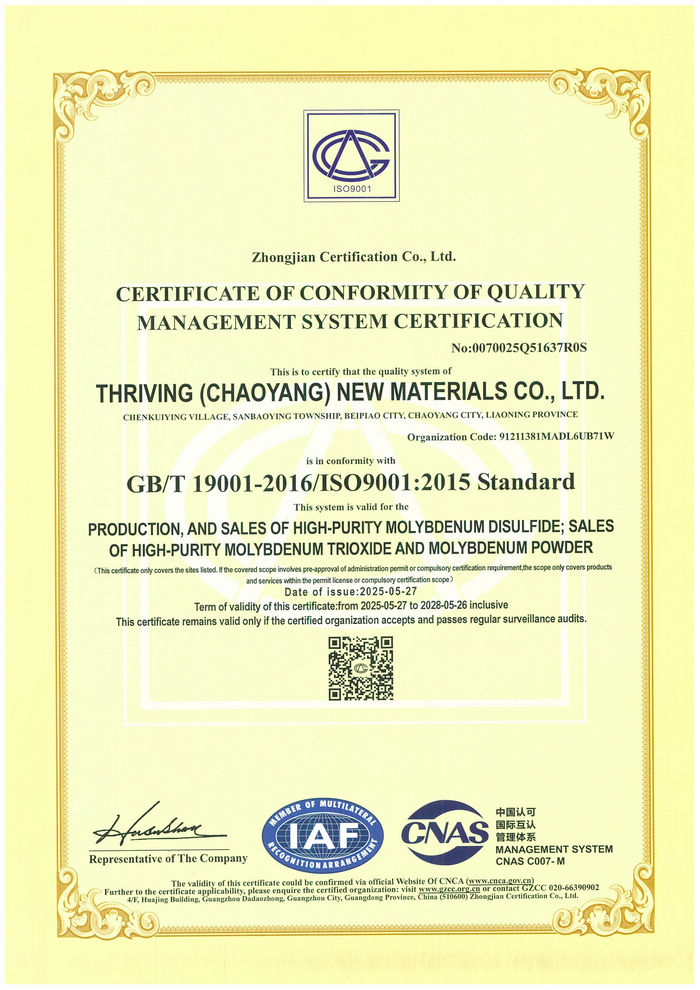 IS09001 Attestato di Conformità alla Certificazione del Sistema di Gestione per la Qualità